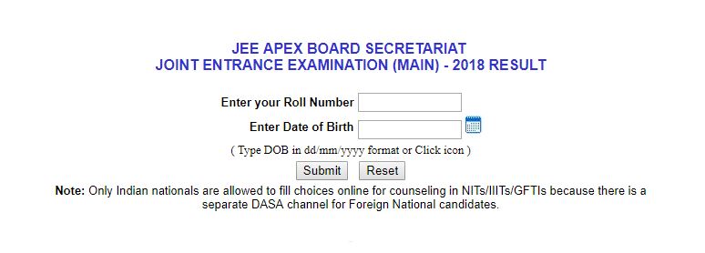 Finally the results for JOINT ENTRANCE EXAMINATION (MAIN) - 2018 have been declared