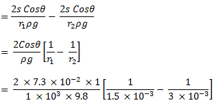 h2 = 2s Cosθ / r2ρg .....(ii)