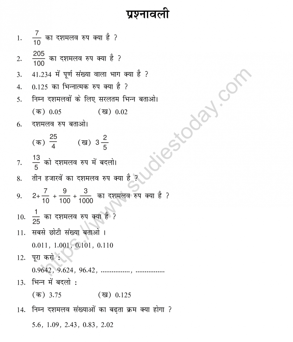 Regular revision of practice worksheets given on studiestoday for Class 5 subject Mathematics Decimals can help you to score better marks in exams